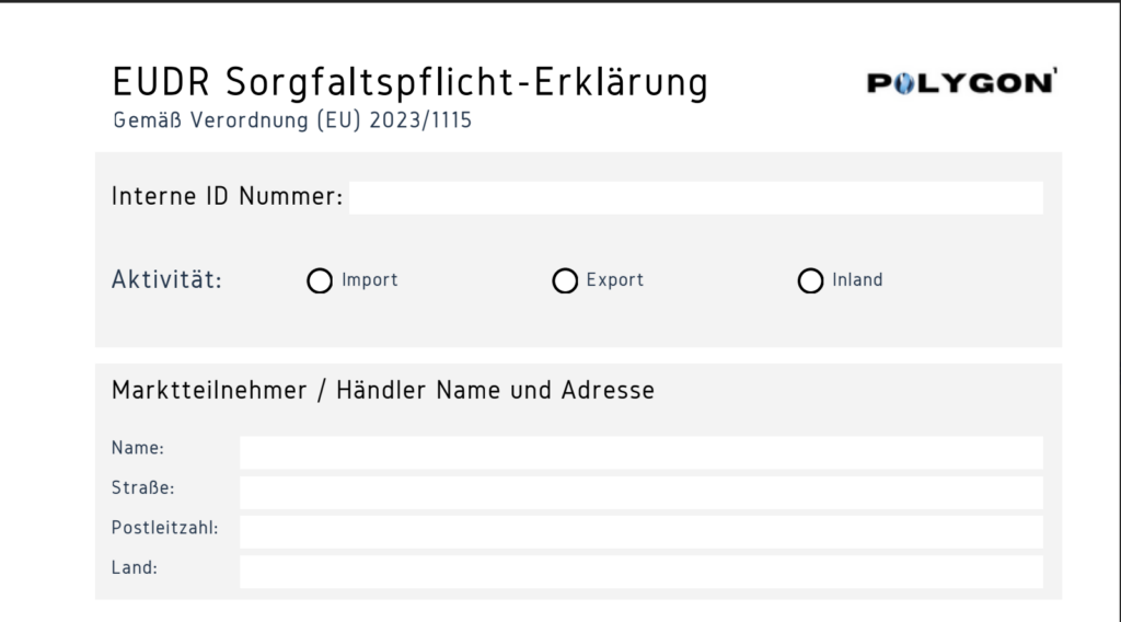 - Erstinverkehrbringer müssen die vollständige Sorgfaltspflicht (Due Diligence) durchführen. Dazu gehören u. a. Risikoanalyse, Risikominderung sowie die Erstellung und Einreichung der Sorgfaltspflichterklärung inklusive Geolokalisierungsdaten.
