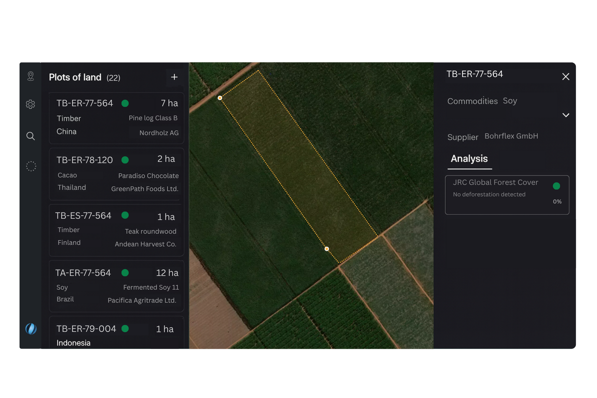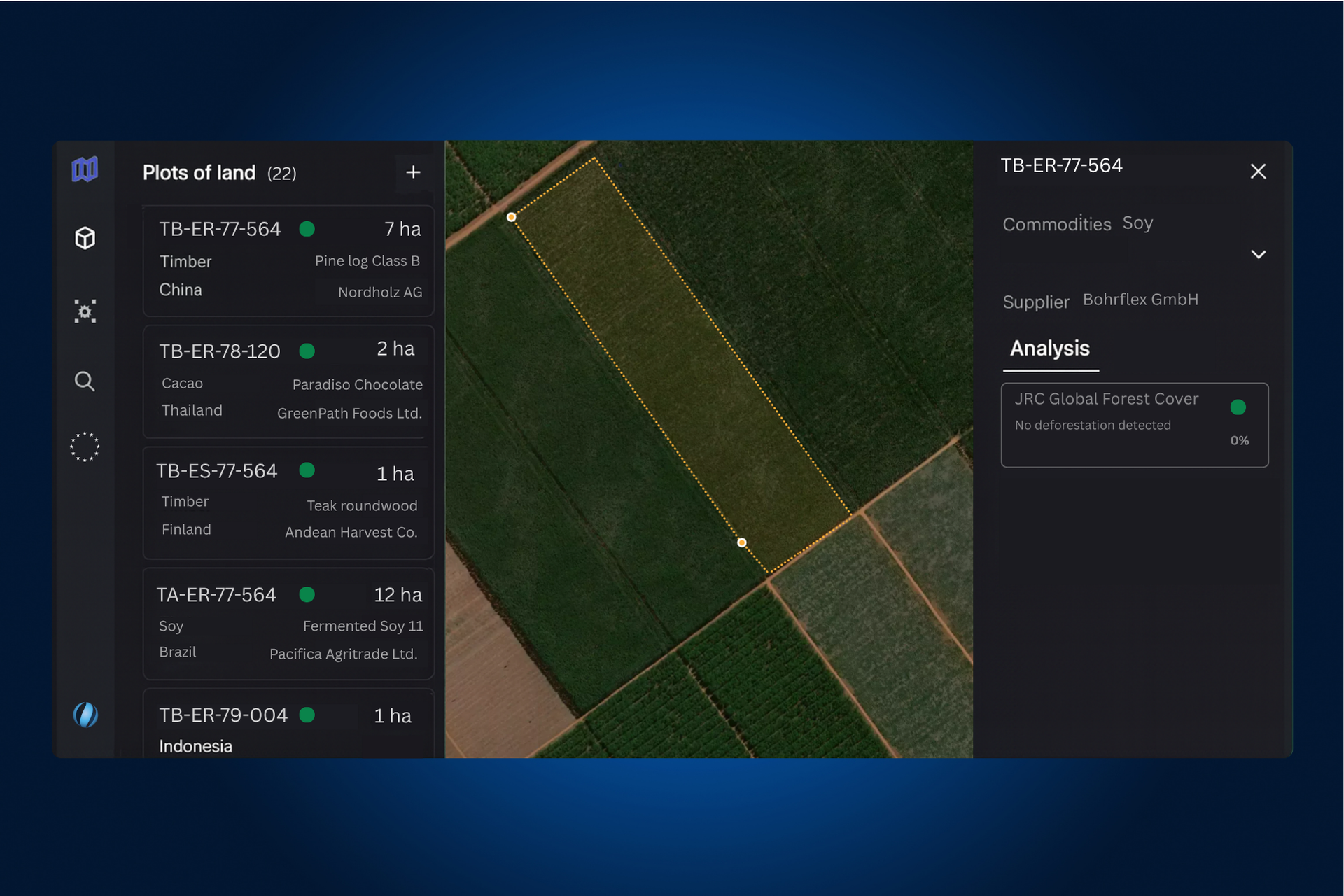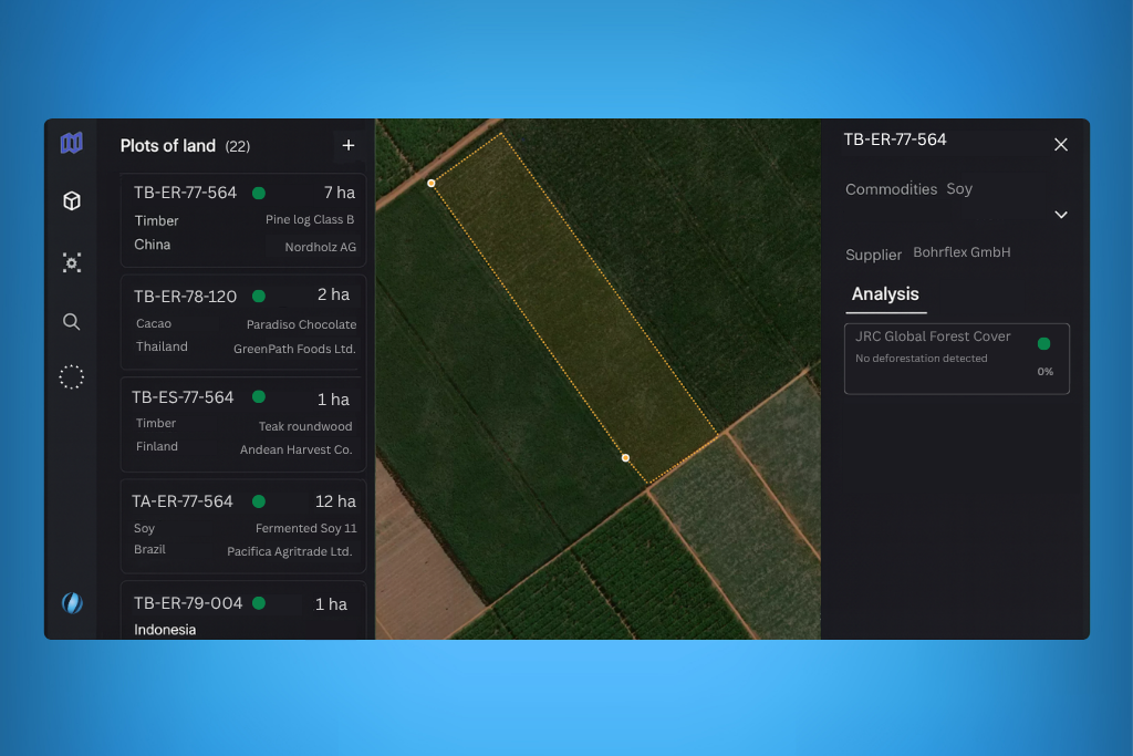 Polygon One’s proprietary satellite-AI engine detects deforestation and land degradation using EUDR-aligned definitions — reducing false positives by up to 98% and enabling faster, more reliable supplier approvals.